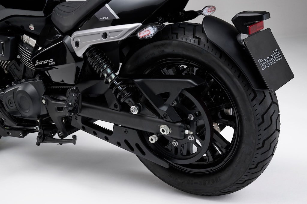 Chiếc Benelli này có phuộc USD ở phía trước và bộ giảm xóc đôi ở phía sau - cả 2 đều không chỉnh được. Hành trình của hệ thống treo chỉ là 100mm và 125mm ở phía trước và phía sau. Với chiều cao yên xe siêu dễ tiếp cận chỉ 730mm, chiếc Bobber này rất hợp lý với những người lái xe thấp hơn.