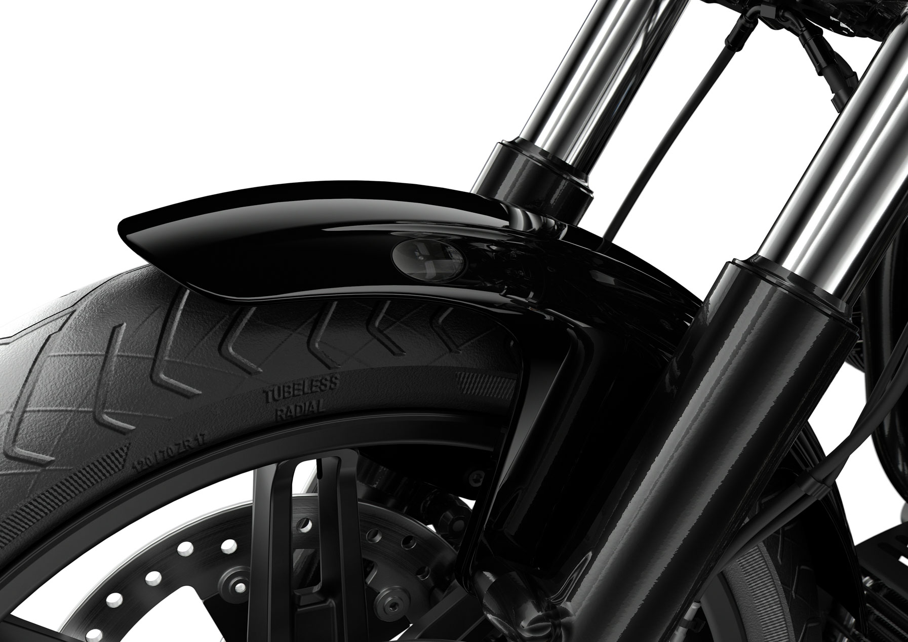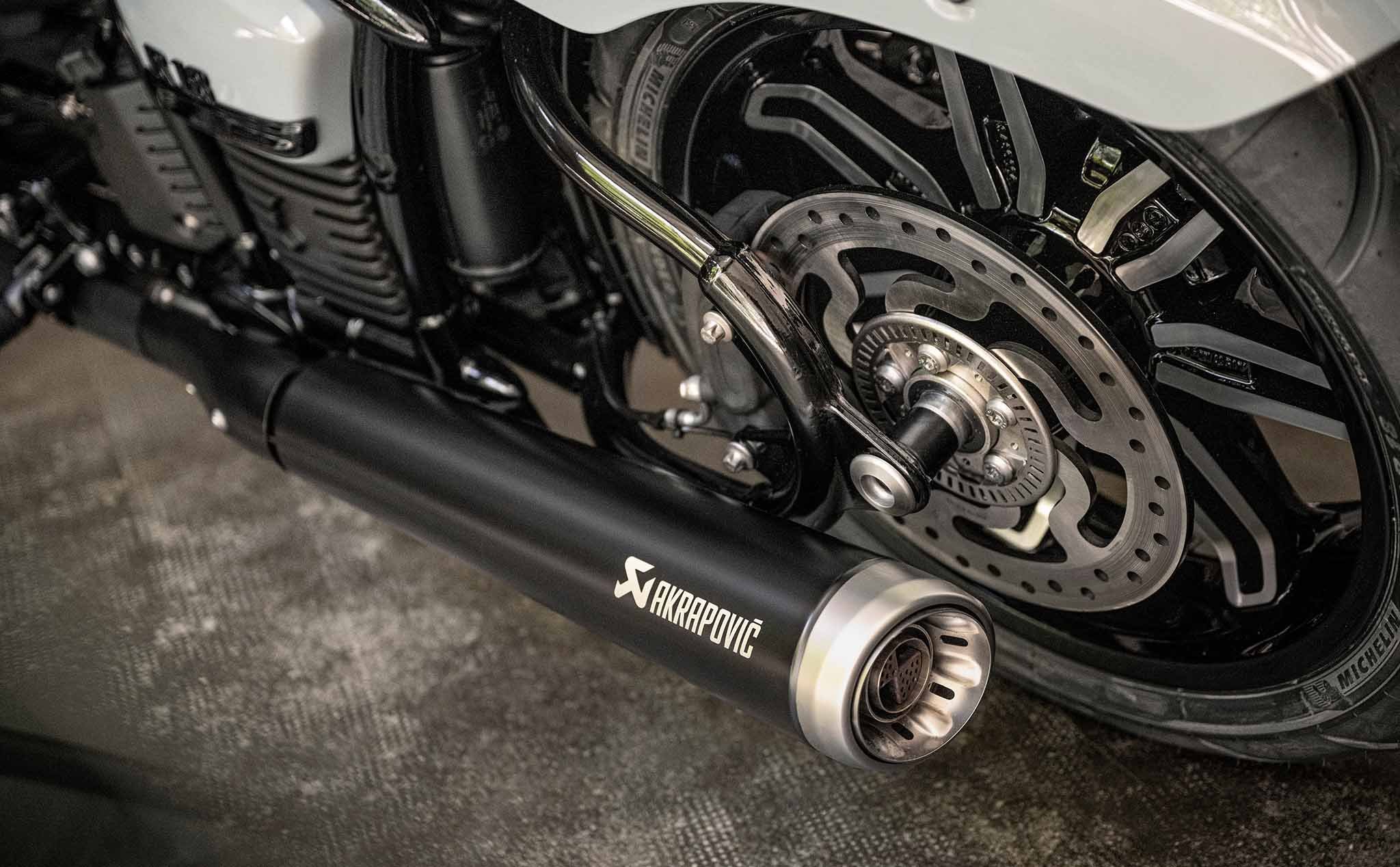 - Thanh đẩy (Push rods), bộ giảm âm nạp (Intake silencer) và vòng trong của đèn pha được hoàn thiện bằng Chrome Tối (Dark Chrome).