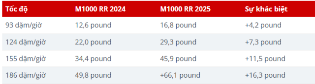 Tuy nhiên, các cánh gió 2 bên vẫn được làm bằng sợi carbon. Hình dạng cánh gió mới được thiết kế để tạo ra lực ép xuống lớn hơn, cả khi người ngồi thẳng đứng hoặc khi nghiêng người. Theo BMW, M1000RR 2025 tạo ra thêm khoảng 33% lực ép xuống ở nhiều tốc độ khác nhau.