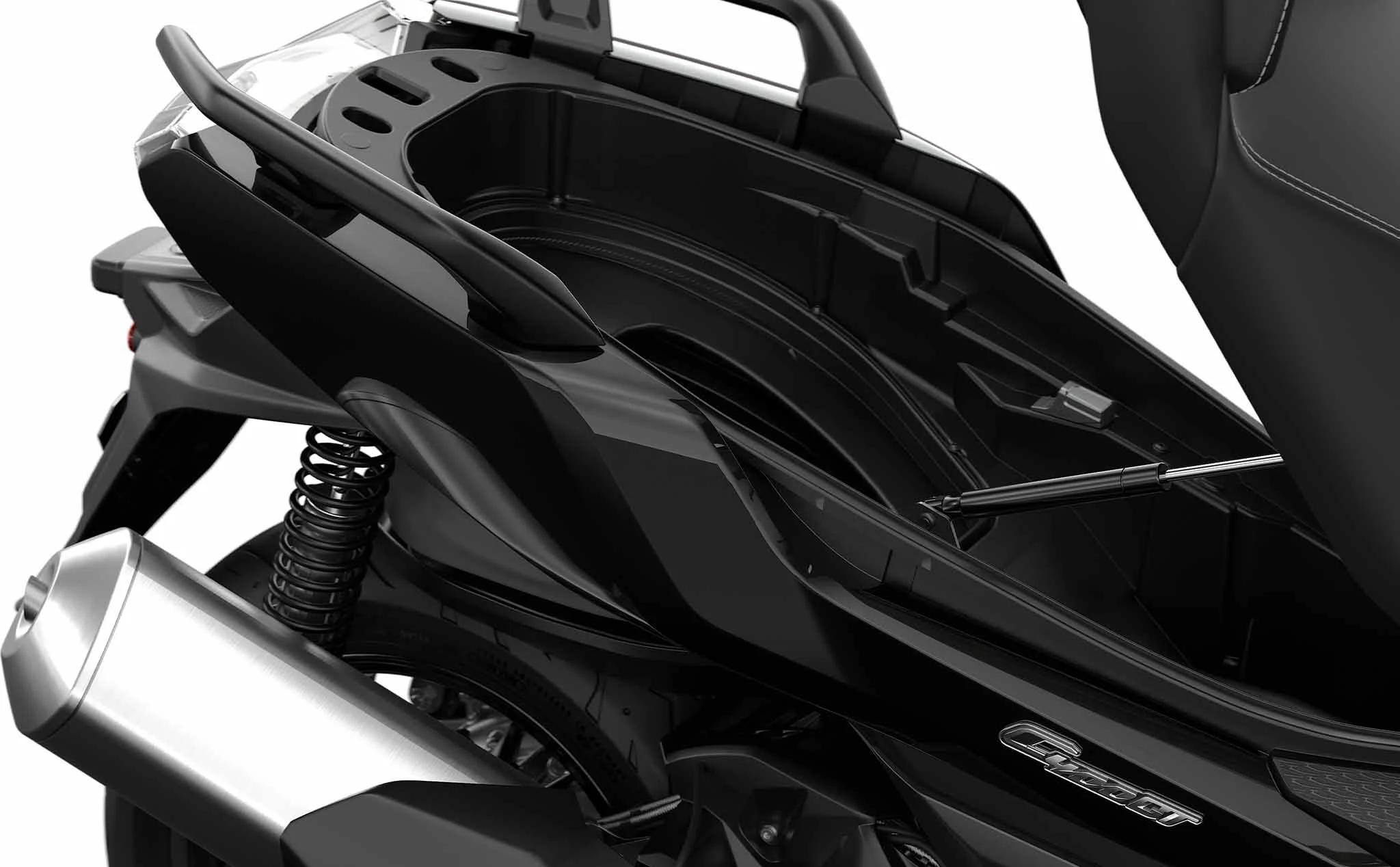 BMW đã mở rộng cốp xe của C 400 GT. Nếu cần thêm không gian, người dùng có thể mua thêm ba ga và thùng trên có dung tích 43,5 lít (tăng 13,5 lít so với mẫu thùng trước và có khả năng chịu trọng lượng gấp đôi, 10 kg so với 5 kg trước kia), tích hợp đèn nội thất và cổng sạc USB.