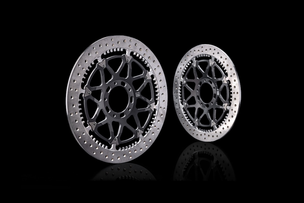 Panigale V4 Tricolore mới là chiếc mô tô thương mại đầu tiên trên thế giới được trang bị hệ thống phanh trước Front Brake Pro, bao gồm hai đĩa Brembo T-Drive có vây, đường kính 338,5mm và dày 6,2mm. Những đĩa này, được các tay lái thử Ducati Factory Riders thử nghiệm trong Race of Champions 2024, có nguồn gốc từ đĩa đua được lắp trong Giải vô địch thế giới Superbike và được ghép nối với heo phanh Hypure.