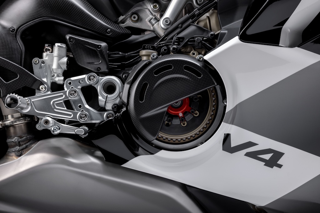 Bất kỳ ai muốn sử dụng Panigale V4 Tricolore trên đường đua cũng sẽ có thể thay nắp bình xăng đua bằng nhôm nguyên khối, nắp nồi hở bằng sợi carbon và bộ dụng cụ tháo giá đỡ biển số, tất cả đều được cung cấp sẵn. Ghế sẽ được bọc bằng Alcantara, kính chắn gió trước bằng nhựa trong plexiglass và hiệu ứng hoạt hoạ chuyên dụng của bảng điều khiển khi khởi động hoàn thiện các thay đổi của bản này.