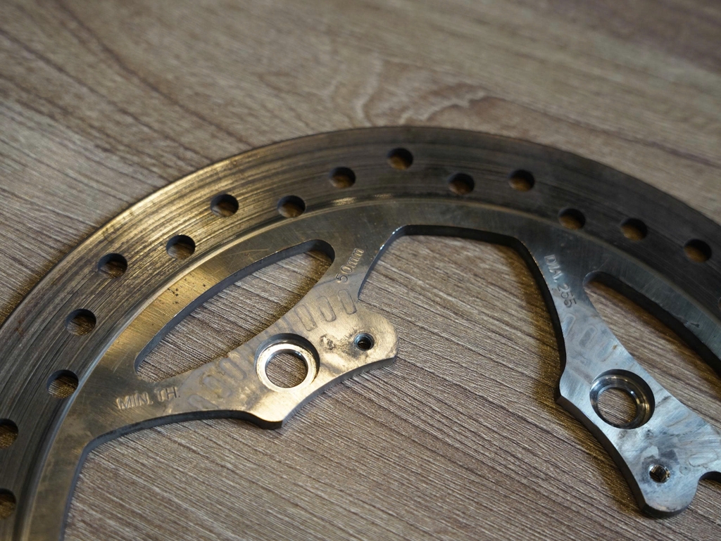 Tình trạng 90% như hình Đĩa thắng zin tháo xe Triumph Scrambler 900 Đĩa có hơi khuyết rất ít do đã qua sử dụng Không cong vênh