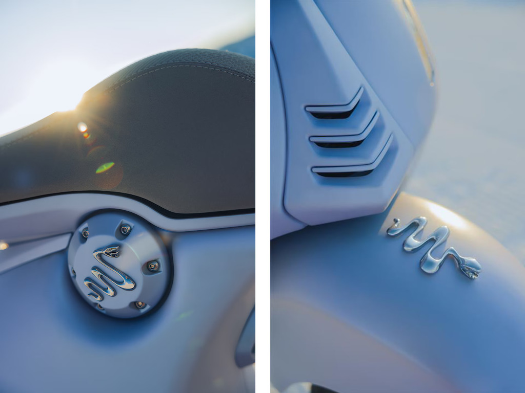 Đan xen vào phong cảnh băng giá này là nguồn cảm hứng từ con rắn, được thể hiện qua lớp bọc tay lái và yên xe mô phỏng theo kết cấu mềm mại của da loài động vật này sau khi được thuộc. Con rắn mạ chrome đúc nổi xuất hiện trên cả nắp bình xăng và chắn bùn, tăng thêm vẻ sang trọng cho phiên bản mới.