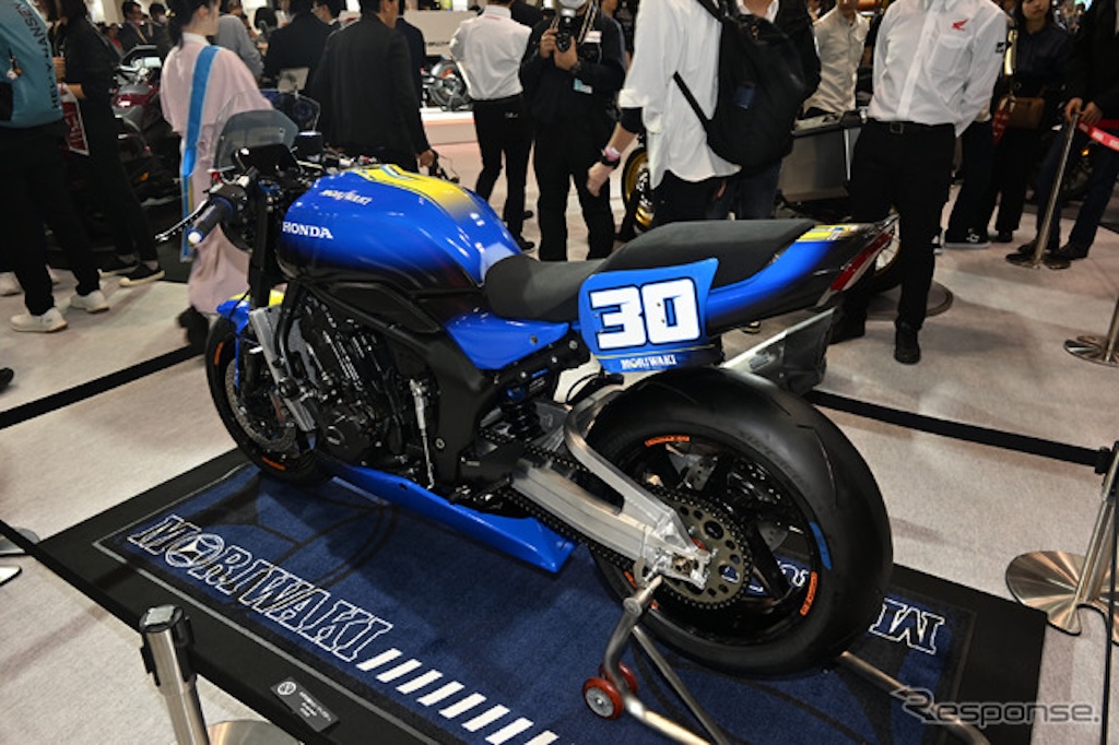 Dù Honda chưa chính thức xác nhận kế hoạch sản xuất chiếc siêu naked bike phong cách hoài cổ CB1000F, nhưng hãng đã bắt tay với công ty phụ tùng độ Moriwaki để tạo ra bản nâng cấp phong cách xe đua.