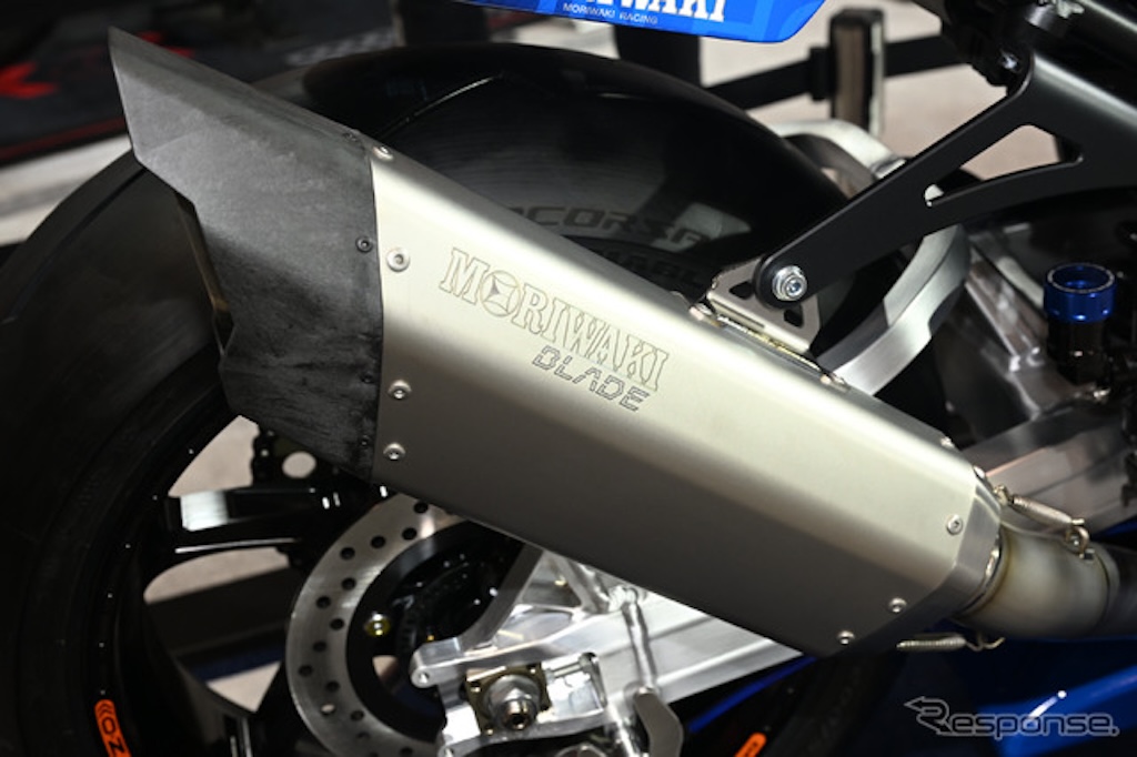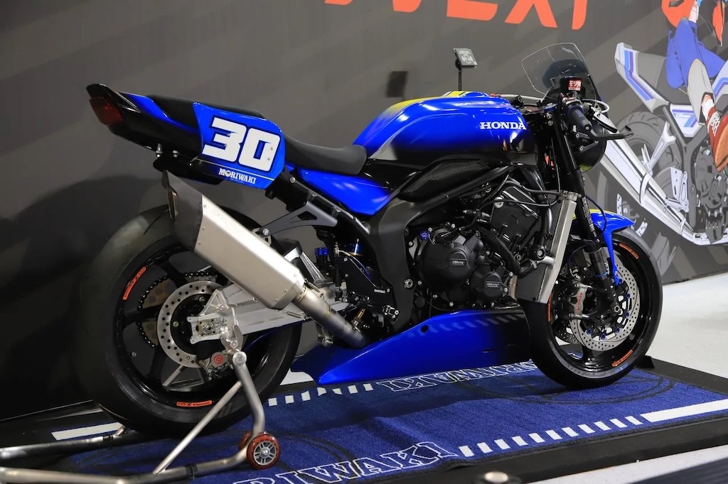 Động cơ của CB1000F vốn dựa trên cơ sở CB1000 Hornet đang được bán, vì vậy chiếc xe có một số phụ tùng bán sẵn như két giải nhiệt lớn hơn và bộ ốp bưởng máy GB Racing. Moriwaki cũng không quên trang bị cho xe pô full system với lon lớn vát xéo Blade đặc trưng của hãng, cũng như bộ gác chân nhôm CNC có thể điều chỉnh.