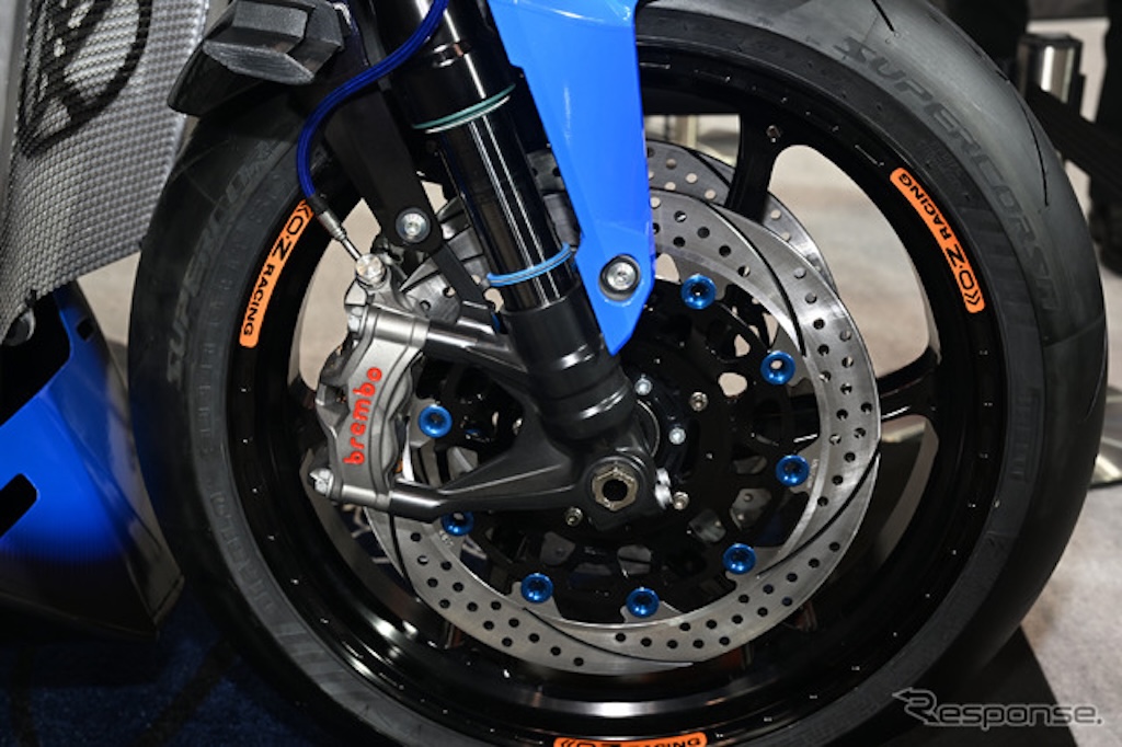 Cặp mâm nguyên bản của CB1000F - vốn có nguồn gốc từ CB1000 Hornet đã được thay bằng vành OZ Gass RS-A bằng nhôm nén nhẹ hơn. Toàn bộ "dàn chân" trước cũng có các nâng cấp đáng chú ý, bắt đầu từ phuộc trước Moriwaki hợp tác cùng Nitron. Hệ thống phanh cũng được độ lại với heo Brembo Stylema kẹp đĩa đồ chơi, nối với dây dầu HEL từ cùm Brembo MK II GP trên ghi-đông.