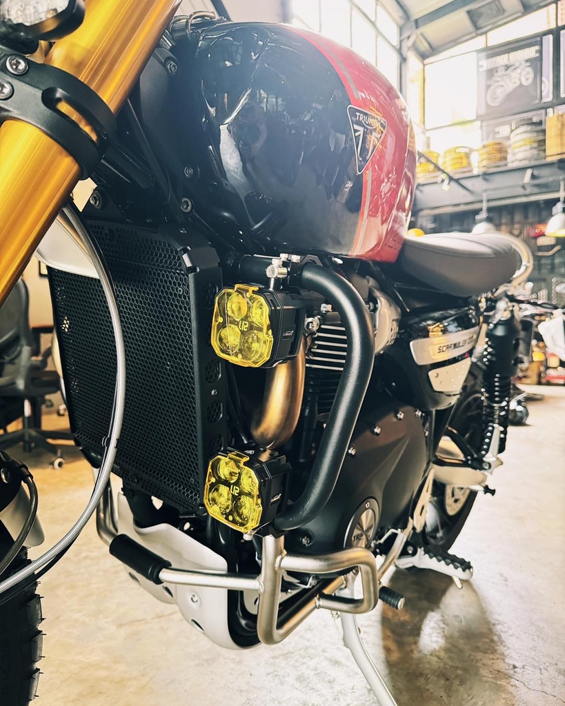 Tình trạng 90% như hình Ngoại hình còn rất mới Đèn còn hoạt động tốt mọi chức năng Có tính năng bấm còi nháy đèn Độ sáng 16200lumen Nắp chụp vàng bảo vệ thân đèn, cải thiện tầm nhìn phá sương Còn đầy đủ pát kẹp theo đèn điều chỉnh đa góc