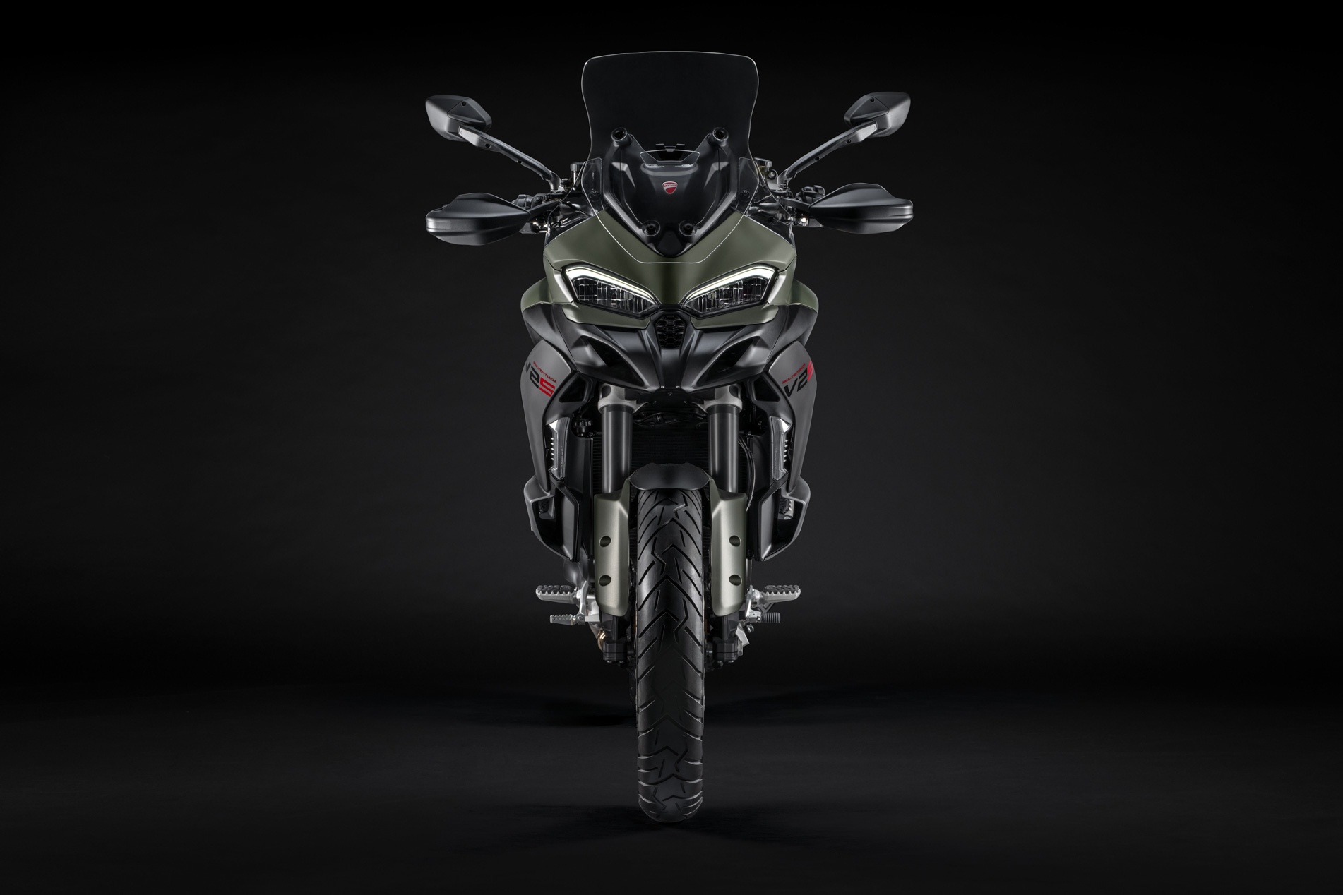 Để đảm bảo sự ổn định và khả năng xử lý bề mặt gồ ghề, xe được trang bị bánh trước kích thước 19 inch. Multistrada V2 sử dụng lốp Pirelli Scorpion Trail II, kích thước 120/70-19 cho bánh trước và 170/60-17 cho bánh sau, mang lại hiệu suất tối ưu trên cả đường phố và địa hình.
