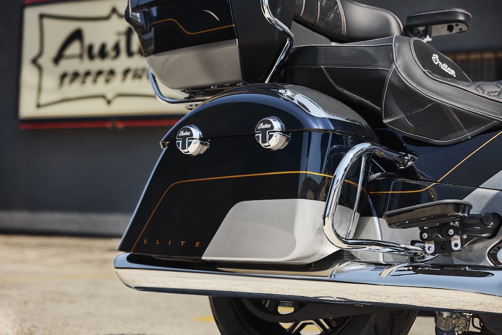 Thay vào đó, mức chênh lệch giá nêu trên đảm bảo cho bản Elite trở thành "salon bay" đúng nghĩa. Cả ghế lái và ghế hành khách đều được sưởi ấm và làm mát, kính chắn gió có thể điều chỉnh bằng điện với hành trình 102mm và 12 loa đã bao gồm subwoofer được lắp đặt. Những chiếc loa này được đặt ở phần đầu xe, thùng bên, trước chân người lái và thùng sau (hay 'cốp xe' theo cách gọi của Indian) để tạo ra trải nghiệm âm thanh vòm. Cả ba hộp đồ đều có khóa trung tâm từ xa.