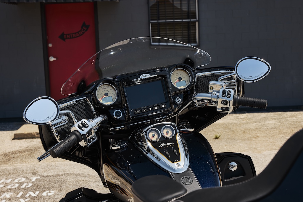 Indian cũng đã thay thế đèn pha tiêu chuẩn bằng đèn LED thích ứng, không chỉ có công suất cao hơn đèn tiêu chuẩn mà còn sử dụng cảm biến góc nghiêng để chiếu sáng đường qua các khúc cua. Phía trước là màn hình cảm ứng 5,7 inch điều khiển nhiều chức năng của xe và có hệ thống định vị vệ tinh tích hợp , cũng như hệ thống điều khiển giọng nói 'Ride Command+' được cài đặt sẵn tại nhà máy, cung cấp 1 năm dịch vụ kết nối miễn phí bao gồm định vị xe, máy theo dõi sức khỏe, Apple CarPlay, v.v.