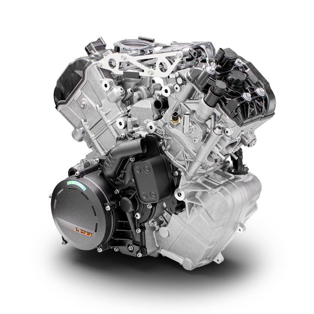 Mặc dù mang tên “1390,” động cơ trên thực tế có dung tích 1.350cc, chỉ hơn 49cc so với phiên bản “1290” trước đó. Tuy nhiên, sự khác biệt lớn đến từ việc KTM lần đầu tiên áp dụng hệ thống điều chỉnh van biến thiên (VVT) cho xe, cho phép chuyển đổi giữa hai cấu hình cam nạp tùy theo tốc độ động cơ và vị trí bướm ga. Điều này giúp tăng đáng kể công suất lên đến 188 mã lực, đạt đỉnh ở mức 10.000 vòng/phút. Mô-men xoắn cực đại đạt 145 Nm ở vòng tua 8.000 vòng/phút.
