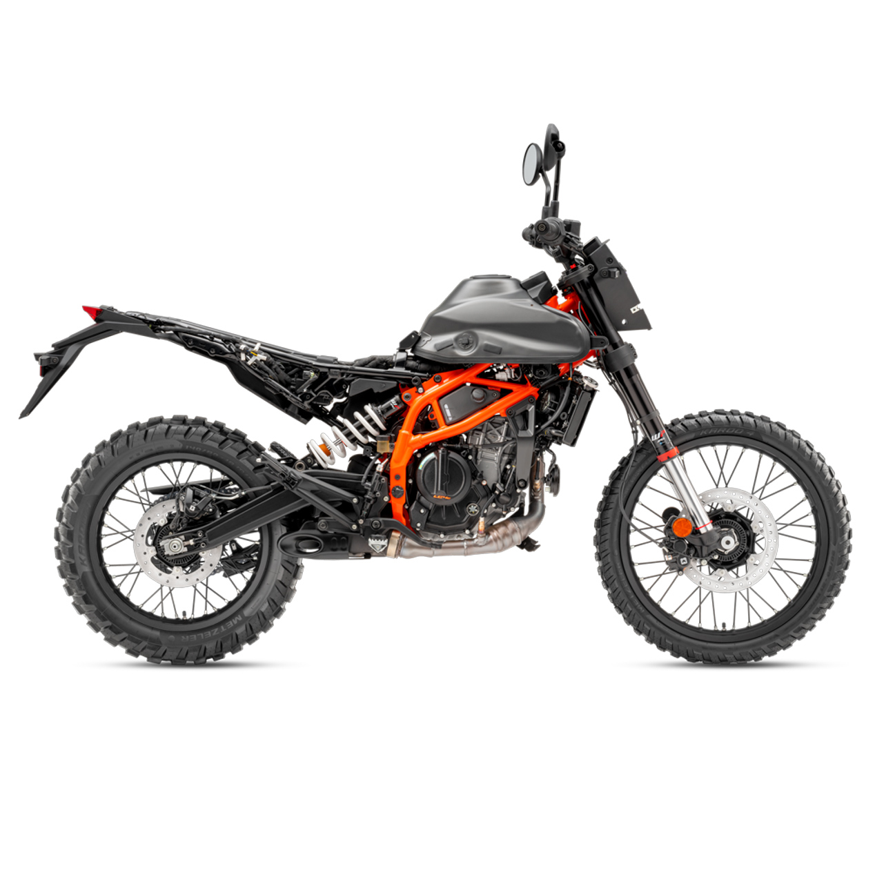 Dòng 390 của KTM tiếp tục được mở rộng với sự ra mắt của 390 Enduro R 2025. Đây là mẫu xe dual-sport đầu tiên dựa trên nền tảng 390 và hướng đến off-road nhiều hơn. 390 Enduro R được trang bị mâm căm trước sau lần lượt là 21 và 18 inch, cùng hệ thống treo hành trình dài, giúp tăng khả năng chinh phục địa hình khó.