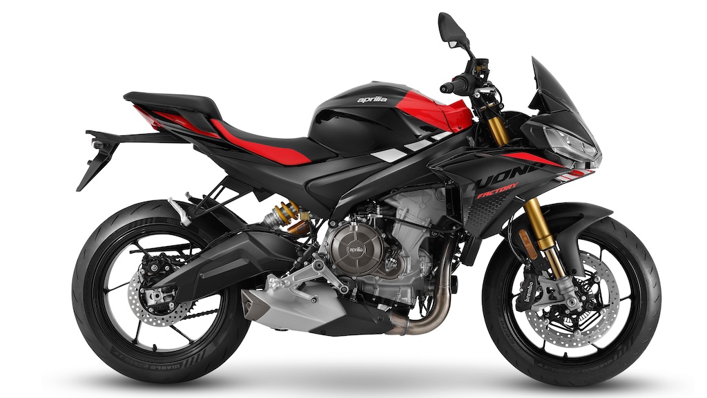 Aprilia đã nâng cấp mẫu xe Tuono 660 Factory naked với động cơ xi-lanh đôi mạnh mẽ hơn, tuân thủ tiêu chuẩn Euro5+, hệ thống điện tử được cải tiến và hệ thống treo Öhlins trước sau.