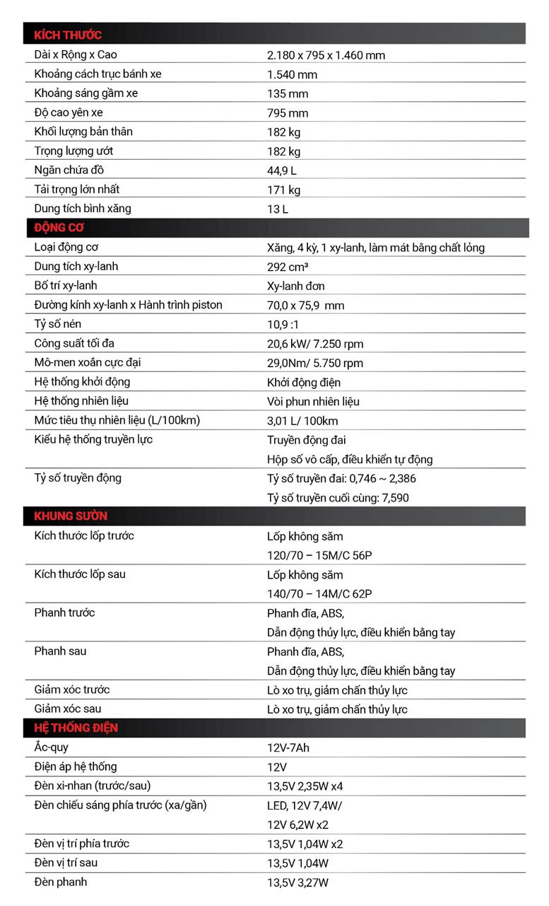-Cốp rộng dưới yên được thiết kế tối ưu, chứa được hai mũ bảo hiểm fullface (tùy kích thước mũ).