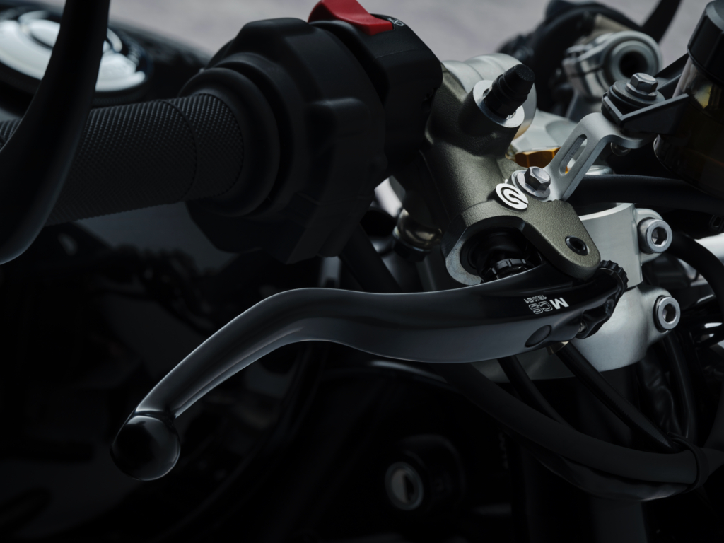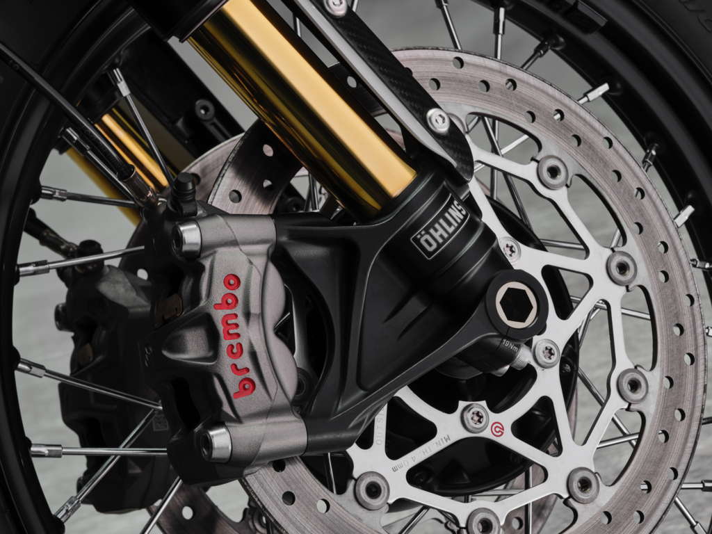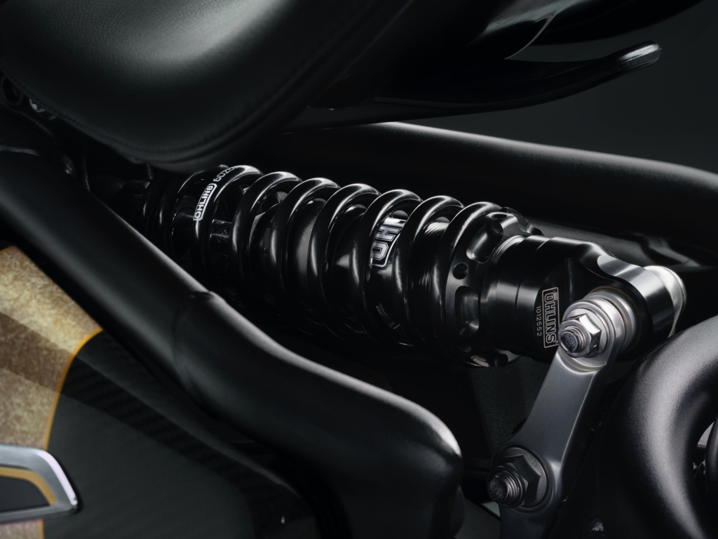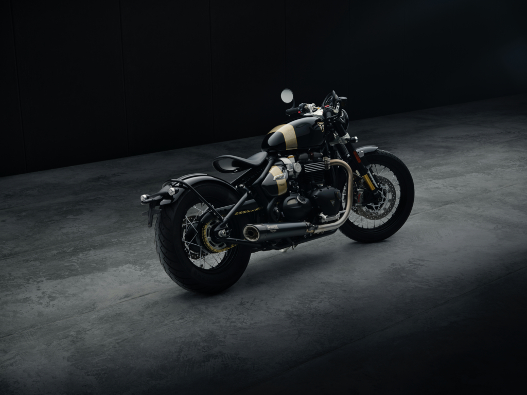 Ngoài ra thay vì pô Arrow như bản 2019, Bobber TFC 2025 được trang bị ống xả độ của Akrapovic với lon pô sơn đen mờ bắn logo và chụp/ốp pô carbon. Nó cũng được hoàn thiện trong tông đen/vàng như trước đây, nhưng với nắp cốp hai bên và bình xăng với dải sơn vàng hiệu ứng vân đá. Dưới bình xăng có chữ ký của nghệ nhân đã sơn xe.