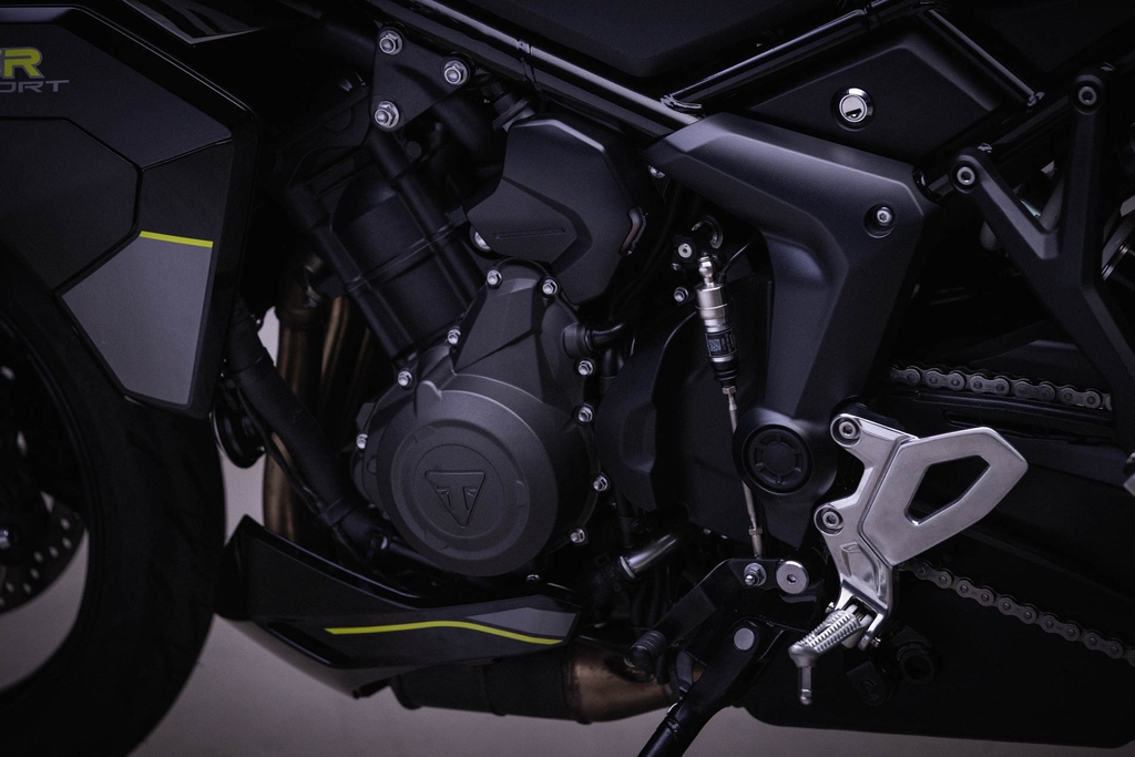 Với dung tích động cơ tăng thêm 20% (giờ đây là 798cc), Tiger Sport 800 có công suất tăng đáng kể, thêm 33 mã lực so với phiên bản 660, nâng tổng công suất tối đa từ 80 lên 113 mã lực. Điều này đặt chiếc xe này vào một phân khúc cao hơn, chung mâm với Ducati Multistrada V2 (111 mã lực) và Yamaha Tracer 9 GT+ (117 mã lực), nhưng Triumph Tiger Sport 800 lại có mức giá thấp hơn. Đỉnh công suất xuất hiện ở vòng tua 10.750 vòng/phút, và mô-men xoắn cực đại 84 Nm đạt ở 8.500 vòng/phút, nhưng 90% mô-men xoắn có thể sử dụng được trong dải vòng tua trung bình.