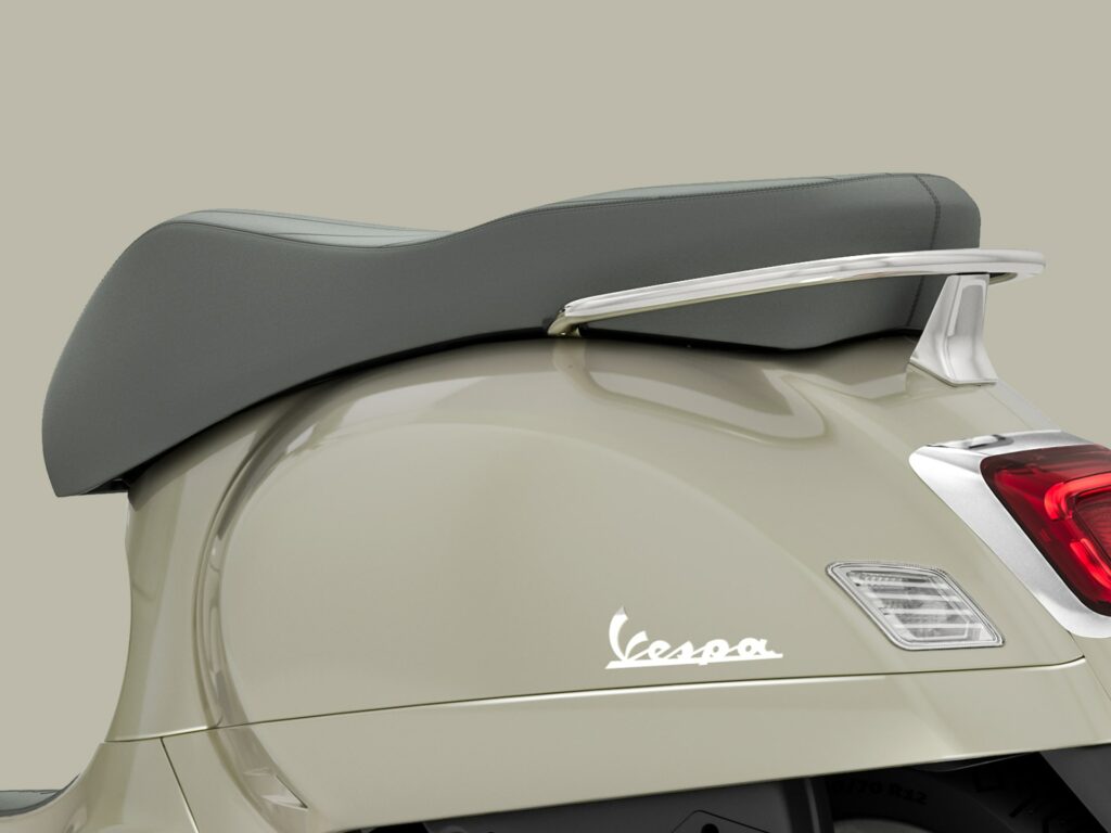 GTS 2025 cổ điển có yên xe màu xám cùng các đường khâu chạy dọc trên yên cùng tông màu. Tay dắt, chỗ gác chân sau và mâm đều được sơn tông màu xám.