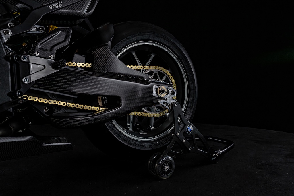 Nhờ các kỹ thuật sản xuất tiên tiến và sử dụng các vật liệu công nghệ cao như carbon và nhôm, BMW Motorrad Concept RR đã thiết lập các chuẩn mực mới về kết cấu nhẹ. Từ khung đến các thành phần nhỏ nhất, mọi chi tiết đều được tối ưu hóa nhất quán để có kết cấu nhẹ và hiệu suất cao. Thiết kế cũng tuân theo nguyên tắc này: sắc nét, có mục đích, biểu cảm - với logo RR dập nổi trên đuôi và biểu tượng RR phát sáng ở mặt dưới của đuôi xe bằng nhôm mỏng manh.