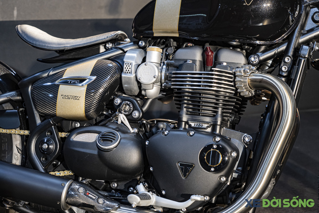 So với chiếc Bobber TFC đầu tiên, điểm khác biệt lớn nhất của bản 2025 là động cơ. Để nhắc lại, khi được ra mắt hồi năm 2019, Bobber TFC được trang bị máy 2 xi-lanh thẳng hàng 1.200cc "HP - High Power" được Triumph trang bị cho các dòng hiệu năng cao như Thruxton, Scrambler 1200 hay Speed Twin thay vì mô-men xoắn lớn "HT - High Torque" như Bobber thường, đạt 86 mã lực cùng mô-men xoắn 110Nm.