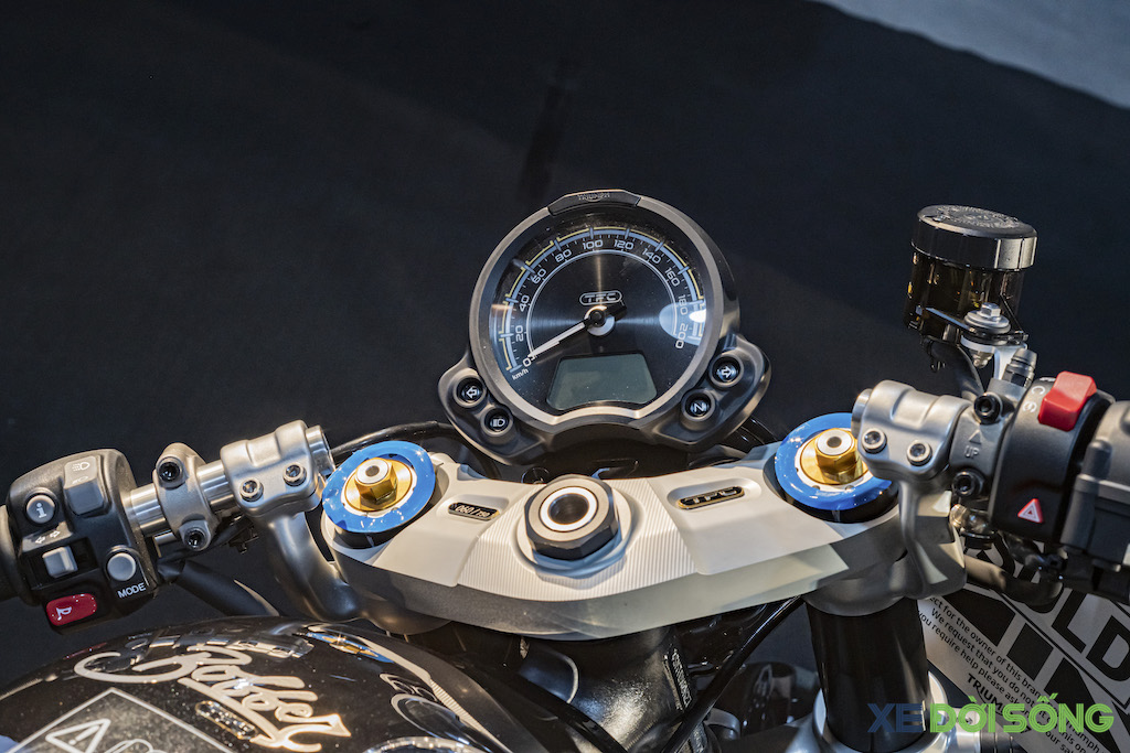 Cuối cùng cũng giống như những chiếc Triumph TFC khác, Bobber TFC trở nên nổi bật so với những người anh em bình thường nhờ hàng loạt các chi tiết tỉ mỉ. Chảng ba trên của xe đã được CNC nguyên khối bằng nhôm và gắn bảng đánh số thứ tự sản xuất; mặt đồng hồ nổi bật hơn, yên da với logo Triumph dập nổi, vành màu đen... tất cả đã khiến Bobber TFC trở nên đẳng cấp hơn.